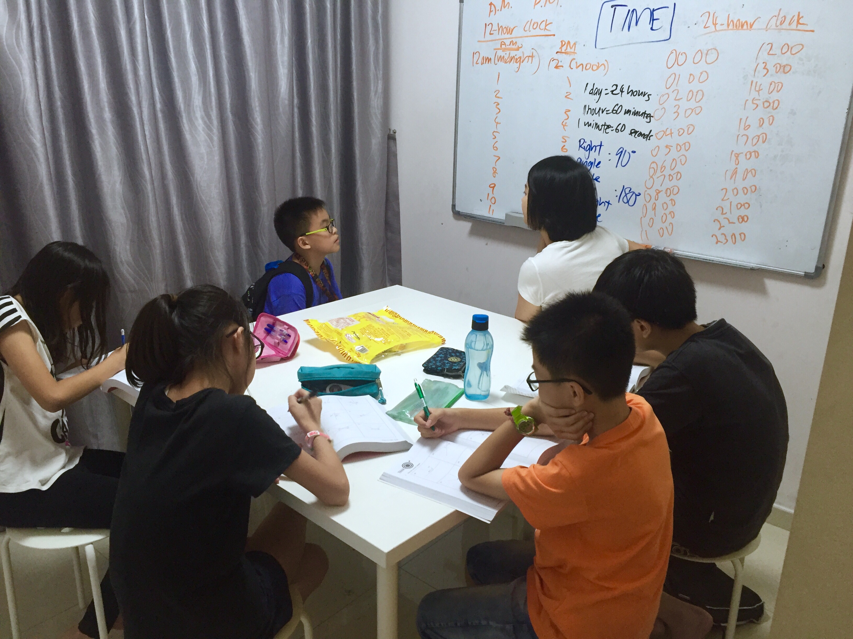 Primary 6 tuition for Mathematics is preparing for PSLE examination 2016. This Mathematics class is doing Paper 1, and we are focusing on getting quality right answers instead of speed for today. Tendency to rush through and making mistakes is one problem with this class that we are trying to eradicate. So instructions for these 3 students are: read carefully, double check, calculate properly and pick the right MCQ options.