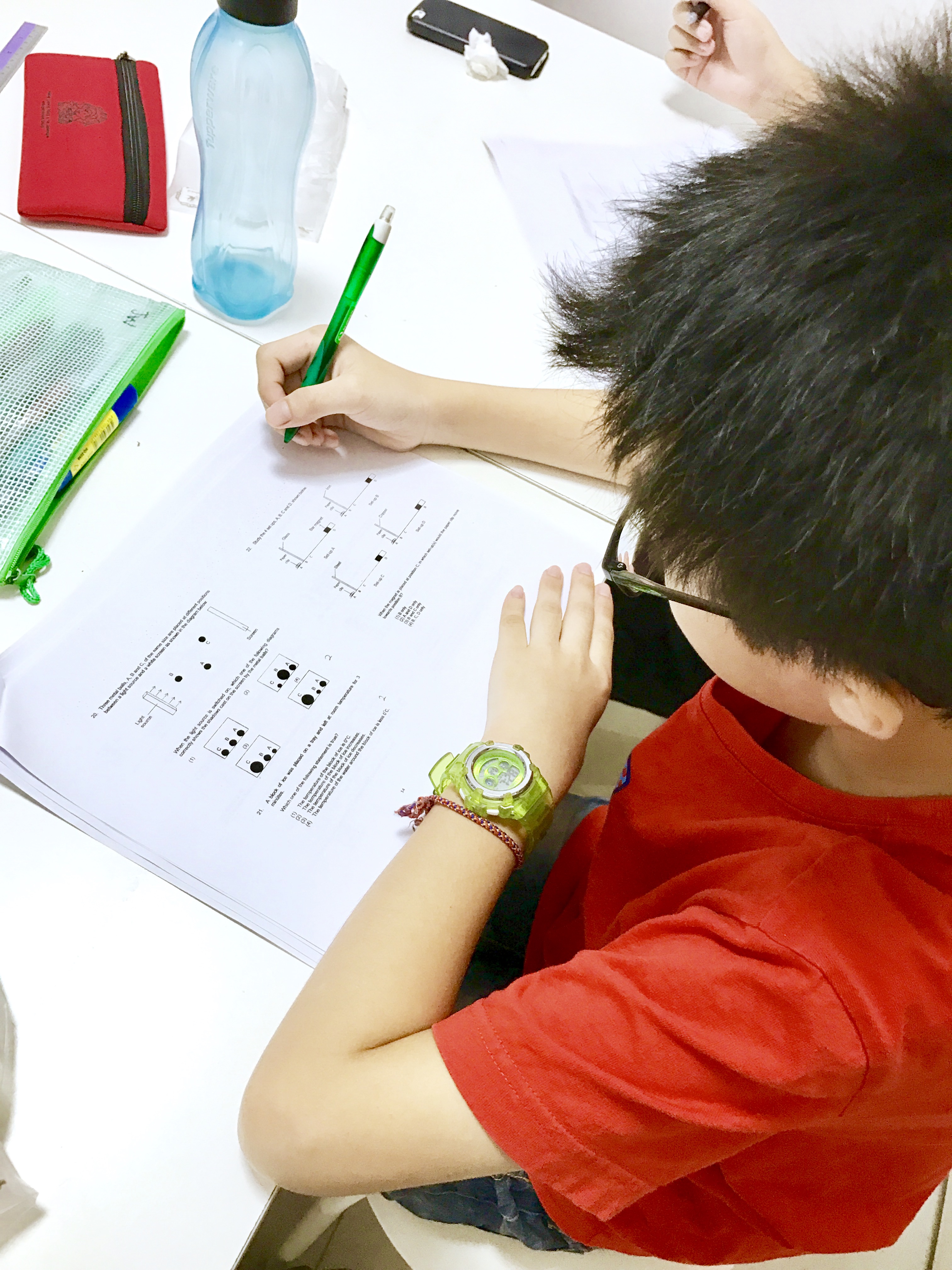 Science Tuition Punggol Primary 5 attempting MCQ section for End of Year Examinations. Past Year Primary Exam Papers